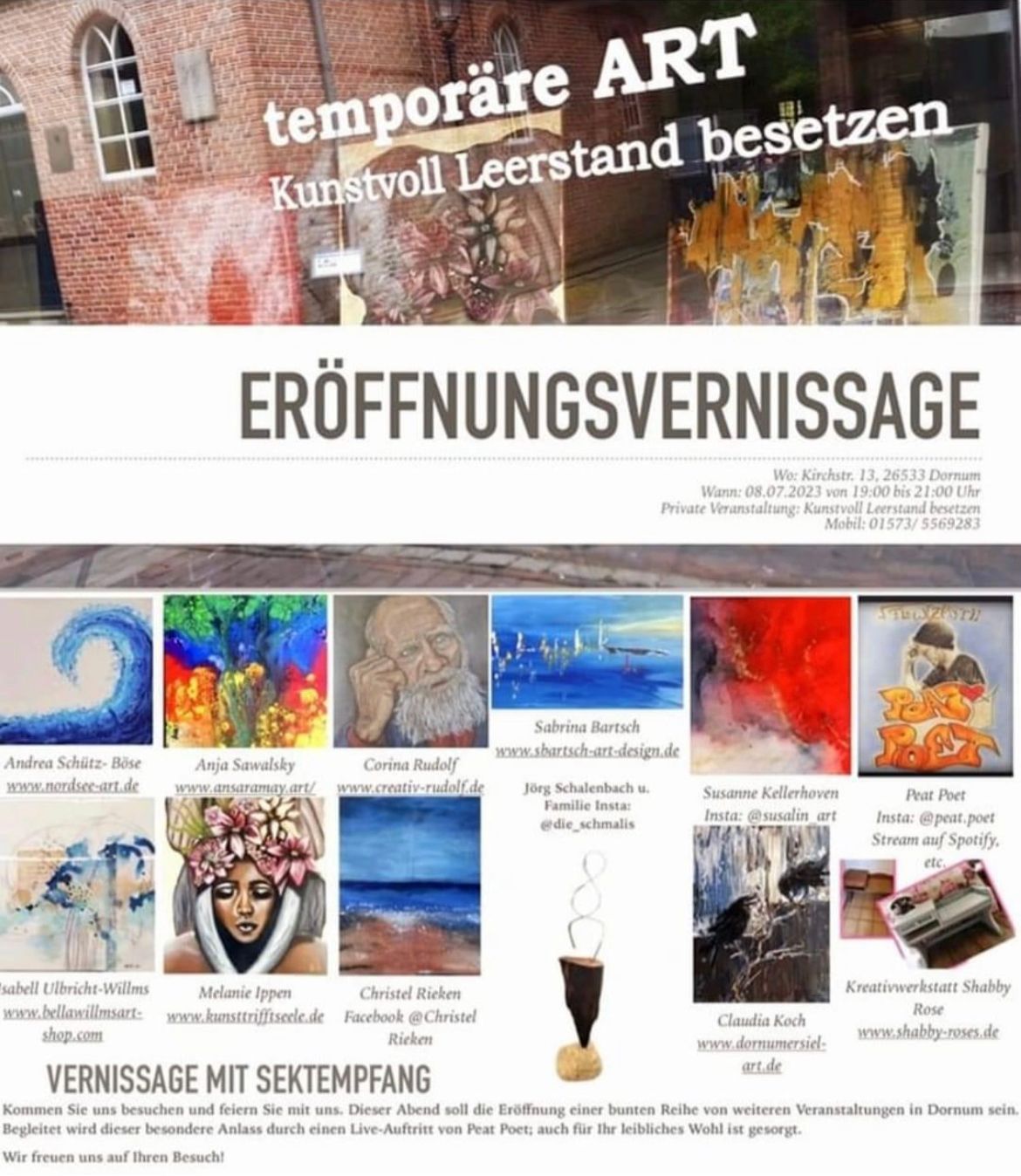 In Dornumersiel, Niedersachsen, Germany — Nach einem Aufruf von Melanie Ippen , dass sie eine Ausstellungsfläche suche, wurden ihr die Räumlichkeiten des ehemaligen Kaufhauses Appelkamp in Dornum angeboten.